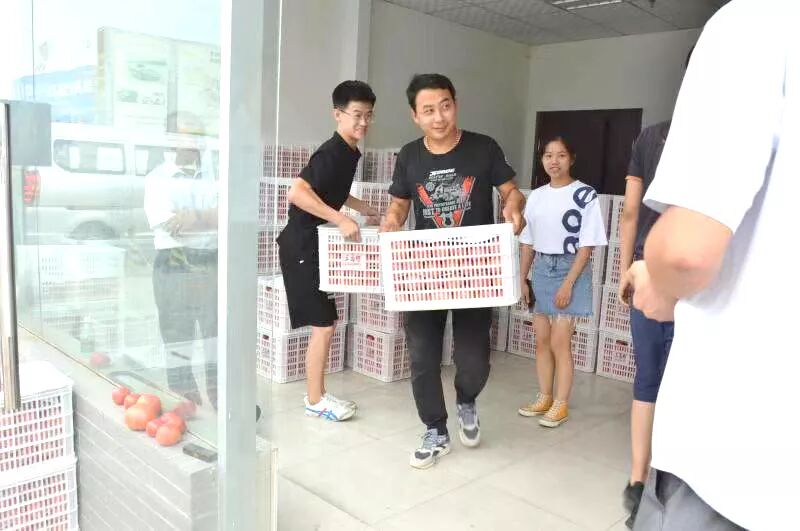 一箱箱带着乡土气息的原生态西红柿进入市场后,按计划免费发放给园区商户和员工,商户和员工们得知发放的西红柿是由五方天雅出资为扶贫所为,个个表现出了敬佩之情。